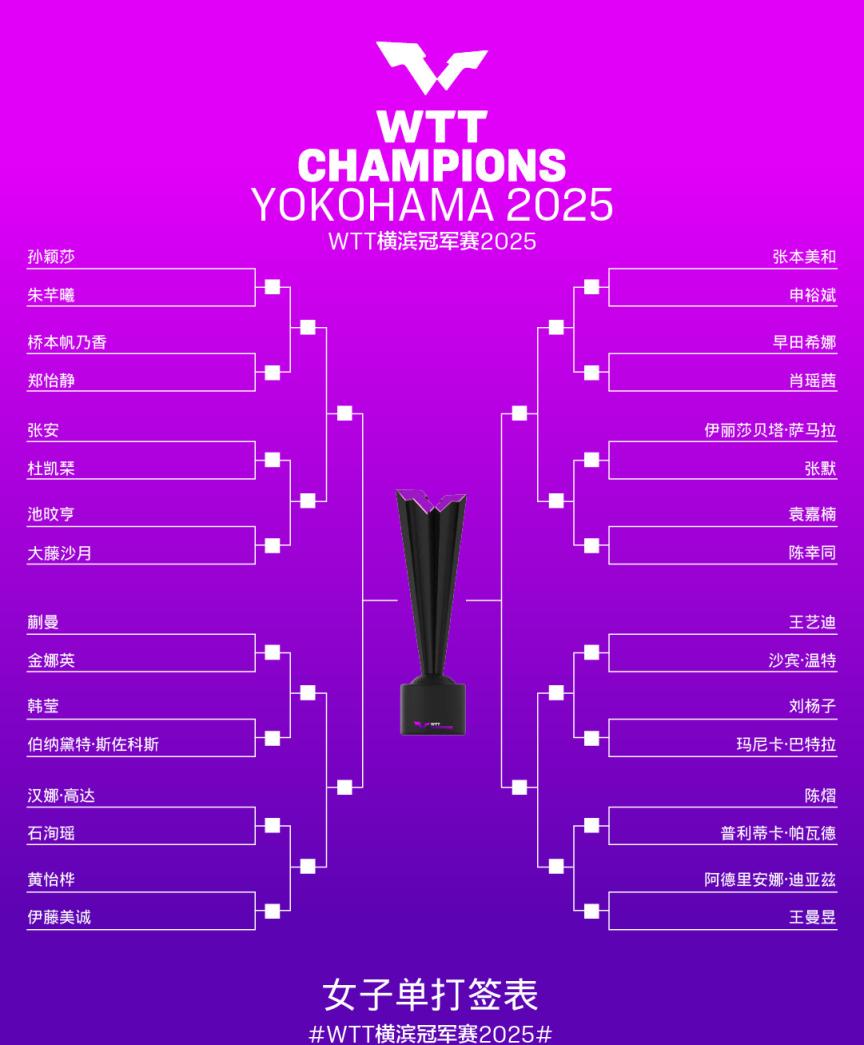 孙颖莎、王曼昱、陈幸同、王艺迪、蒯曼、石洵瑶、陈熠共7人参与女单角逐。这7人全部参加了WTT美国大满贯的争夺,陈熠表现亮眼,夺得女单亚军。本次横滨冠军赛,陈熠能否延续在美国大满贯赛中的出色表现,也是一大看点。