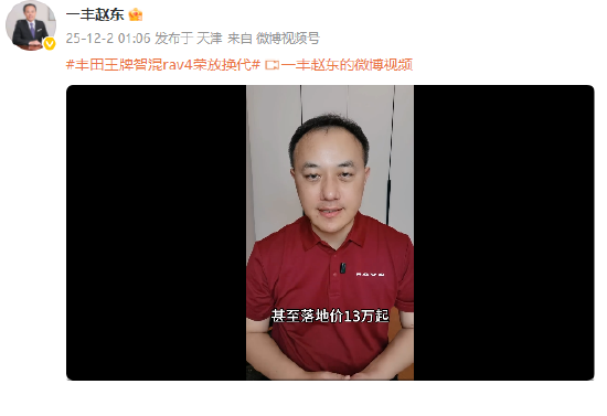 12月2日消息,一汽丰田汽车销售有限公司企划部部长赵丰发微博表示金橘策略,全新第六代荣放的官方价格已在广州车展公布,自媒体传其降价5万,落地价13万起售的说法不实。